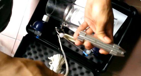 - Préparation de la bouteille : Fixez les boucles du câble d’assemblage sur les broches du mécanisme de déclenchement.
