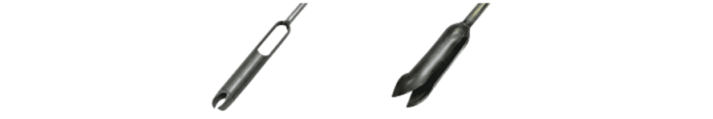 Les gouges sont un genre de tarière manuelle mais qui se différencie des autres par une partie basse en forme de demi lune. Cette spécificité permet de réduire la contamination de l’échantillon.