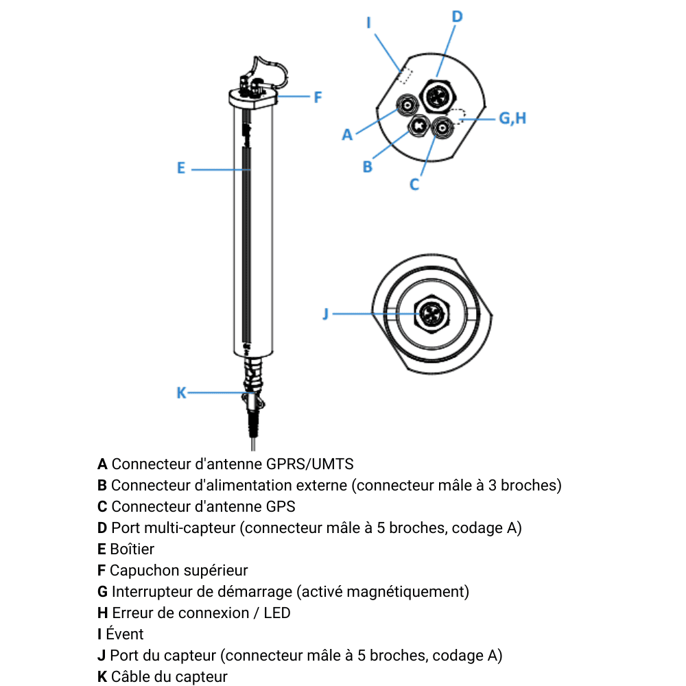 Note : le modem est alimenté par des piles alcalines standard, mais une pile au lithium est optionnelle pour une utilisation intensive. Comme les capteurs ont des besoins en énergie différents, le GDT Prime Plus offre la possibilité d’utiliser une alimentation externe (6-24V DC) pour prolonger la durée de vie de la batterie.
