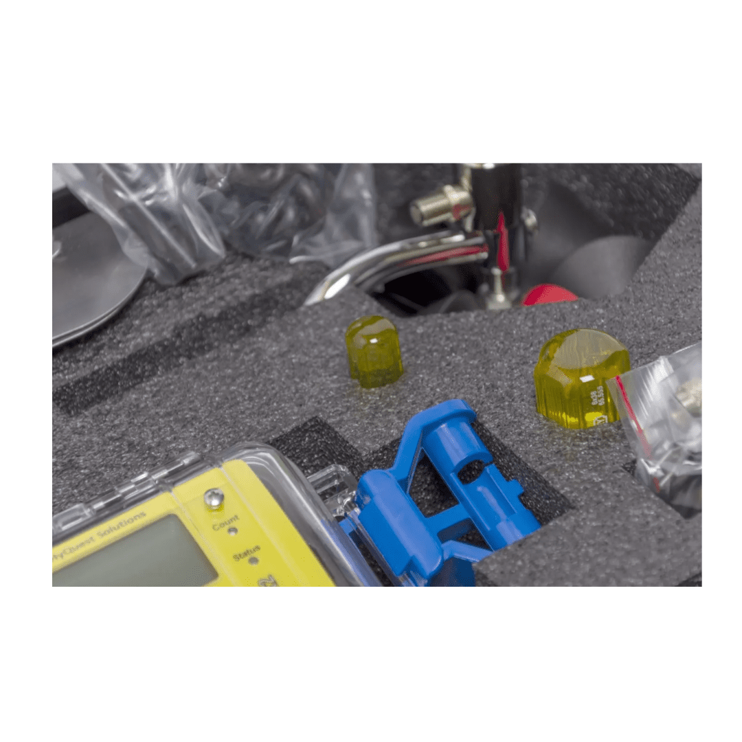 - Kit de Base : Compteur à godets, tournevis, câble de connexion de 2,5 m, certificat d’étalonnage, 30 ml d’huile pour compteur de courant.