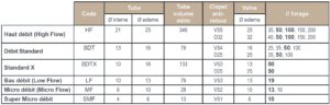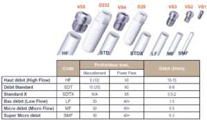 Les chiffres en gras indiquent la profondeur maximale recommandée.
