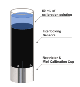 La caractéristique innovante du mini gobelet de calibration n’utilise que 50 mL de solution de calibration, réduisant les coûts de calibration de 5x par rapport aux méthodes traditionnelles. C’est une économie significative, particulièrement pour des calibrations fréquentes.