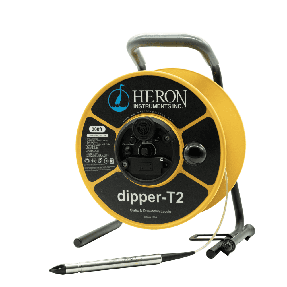 Le dipper-T2 est un mètre de niveau d’eau conçu pour les foreurs de puits, les consultants et les hydrogéologues du monde entier. Ce dispositif est capable de mesurer les niveaux d’eau statiques ainsi que les niveaux en chute. Le mode statique permet de mesurer la profondeur de l’eau dans les puits, forages et colonnes montantes. Le mode DrawDown est utilisé pour mesurer les baisses de niveau d’eau lors de la purge, du développement de puits et des échantillonnages à faible débit, aidant ainsi à protéger vos pompes contre les dommages liés au fonctionnement à sec.