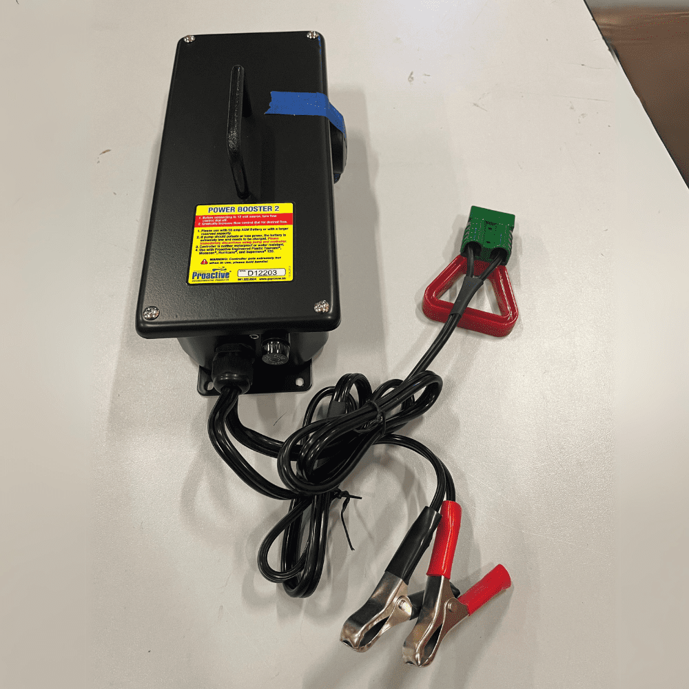 Le Contrôleur / Survolteur Power Booster de Proactive Environmental Products® est conçu pour les pompes en plastique haute performance comme Hurricane, Monsoon et Supernova 37. Ce contrôleur de débit permet d’augmenter progressivement le débit via le cadran de réglage pour obtenir le débit souhaité. Ce dispositif ne permet pas de réaliser du Low Flow. Il est recommandé de l’utiliser avec une batterie AGM de 55 ampères ou avec une capacité réservée plus importante pour une puissance de pompage optimale.